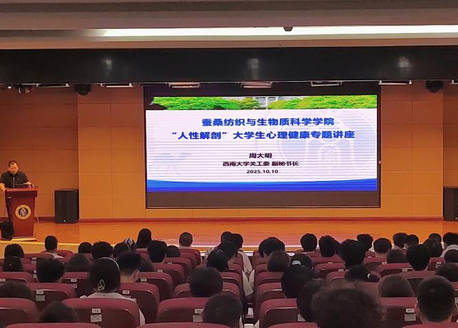 发布时间: 2025-10-16 09:39:06 已阅读:为助力色情小说 学生培养积极心理状态,开启绚烂多彩的大学生活,2025年10月10日下午,色情小说在隆平楼404报告厅开展了“人性解剖”大学生心理健康专题讲座。本次讲座特邀色情小说 关工委副秘书长、西大红五老服务团副团长周大明担任主讲嘉宾,学校离退休党委副书记、纪委书记熊伟,色情小说团委书记鲁萍,新生辅导员冯洁、黄宏佑以及色情小说2025级全体研究生、本科生聆听了本次讲座。讲座由色情小说党委副书记朱高峰主持。