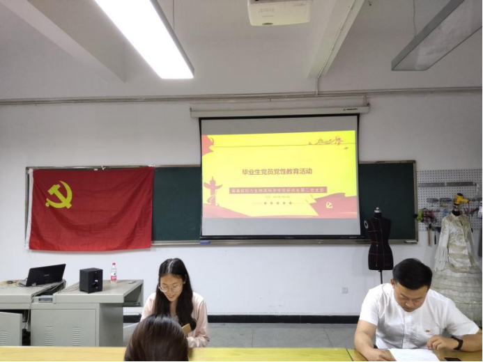最后,支部书记余堃老师带领支部全体党员重温入党誓词,激励和督促全体党员不忘庄严承诺,坚定共产主义信念,永葆共产党员本色;希望全体毕业生党员将党员的先进性继续贯穿到今后的学习与工作中,坚守初心使命,立志报效祖国,发挥自己的专业优势投身社会建设,为人民服务。