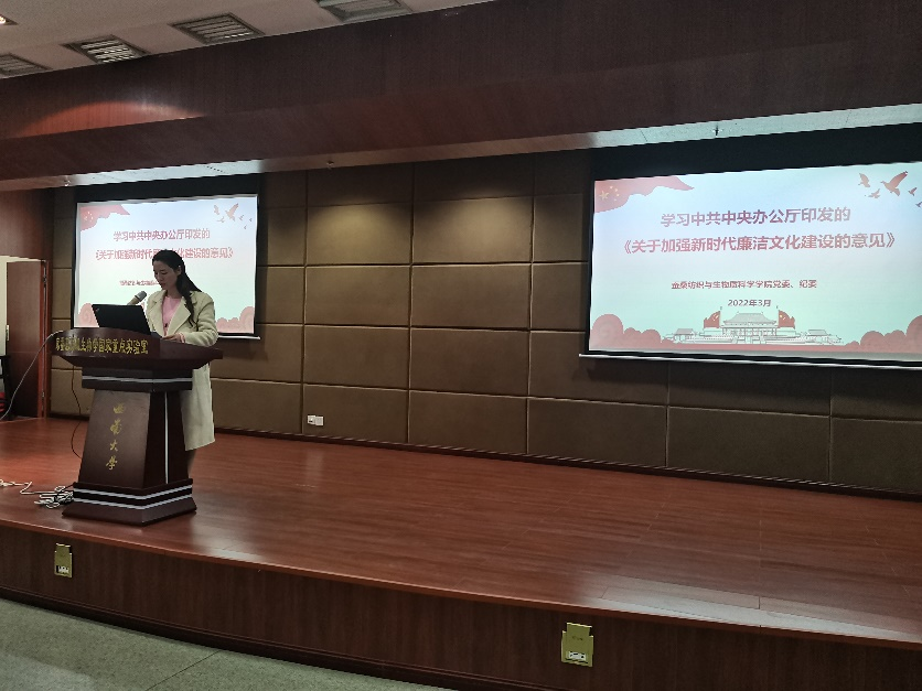 发布时间: 2022-04-08 10:46:40 已阅读:为认真落实新形势下全面从严治党新部署新要求,突出理想信念、政治素养教育,切实强化纪律规矩意识,筑牢党员干部和教职员工廉洁自律的思想防线,3月4日,色情小说 党委、纪委开展廉政警示教育培训,组织色情小说党委党员干部和教职员工集中学习中央办公厅《关于加强新时代廉洁文化建设的意见》(以下简称《意见》),并运用落实中央八项规定精神、严格科研经费管理、遵守学术道德规范等方面的典型案例开展警示教育。