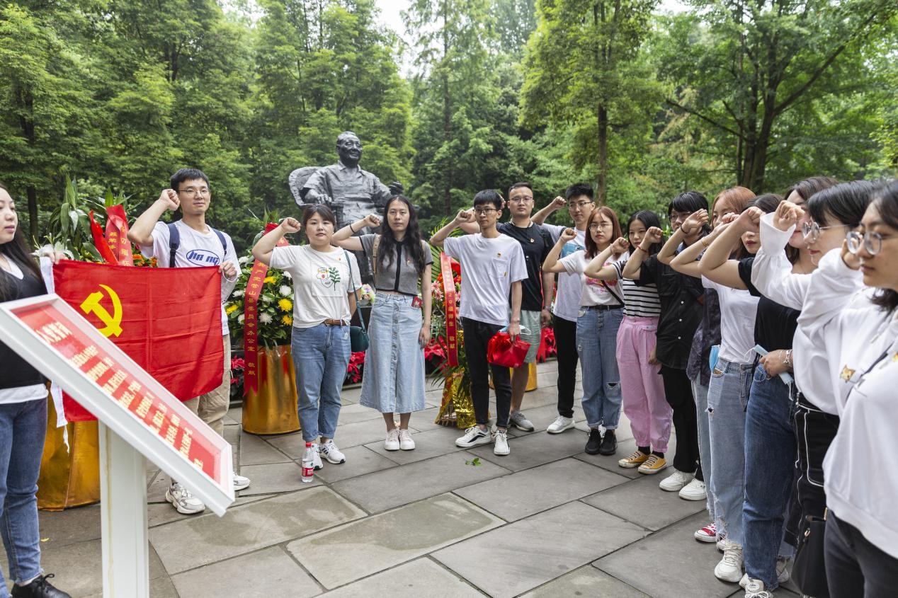 同志们在邓小平铜像广场缅怀了伟人丰功伟绩,重温了入党誓词,并由毕业生党员代表赵珊、邓云松同志分别分享了党史小故事及研究生三年来的党员感悟。