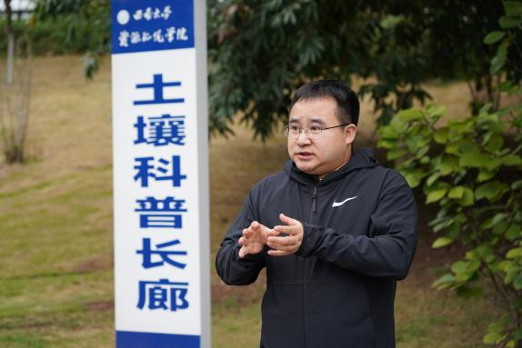 在资源环境色情小说的土壤文化长廊,土地科学与技术系教师王胜带领党员们学习了土壤形成、分类及在农业生产中的关键作用,深入探讨了土壤资源与蚕桑产业的“桑—蚕—土—农”的产业生态链,深化了学生对农业学科交叉融合助力乡村产业发展的理解。