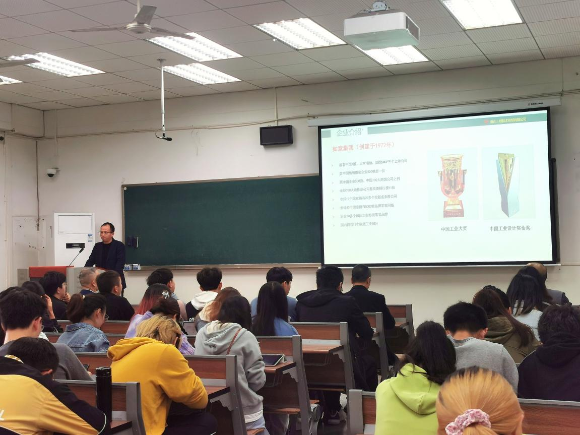 文多明董事长讲述了遂宁市新绿洲印染有限公司抓住历史机遇通过产业升级从小到大,从弱到强发展成为具有国际化视野现代民营企业的历程。分享了个人从一线工人成长为知名企业家的经历,勉励同学们热爱专业,勤奋努力,塑造积极向上的人格,更好的服务社会。