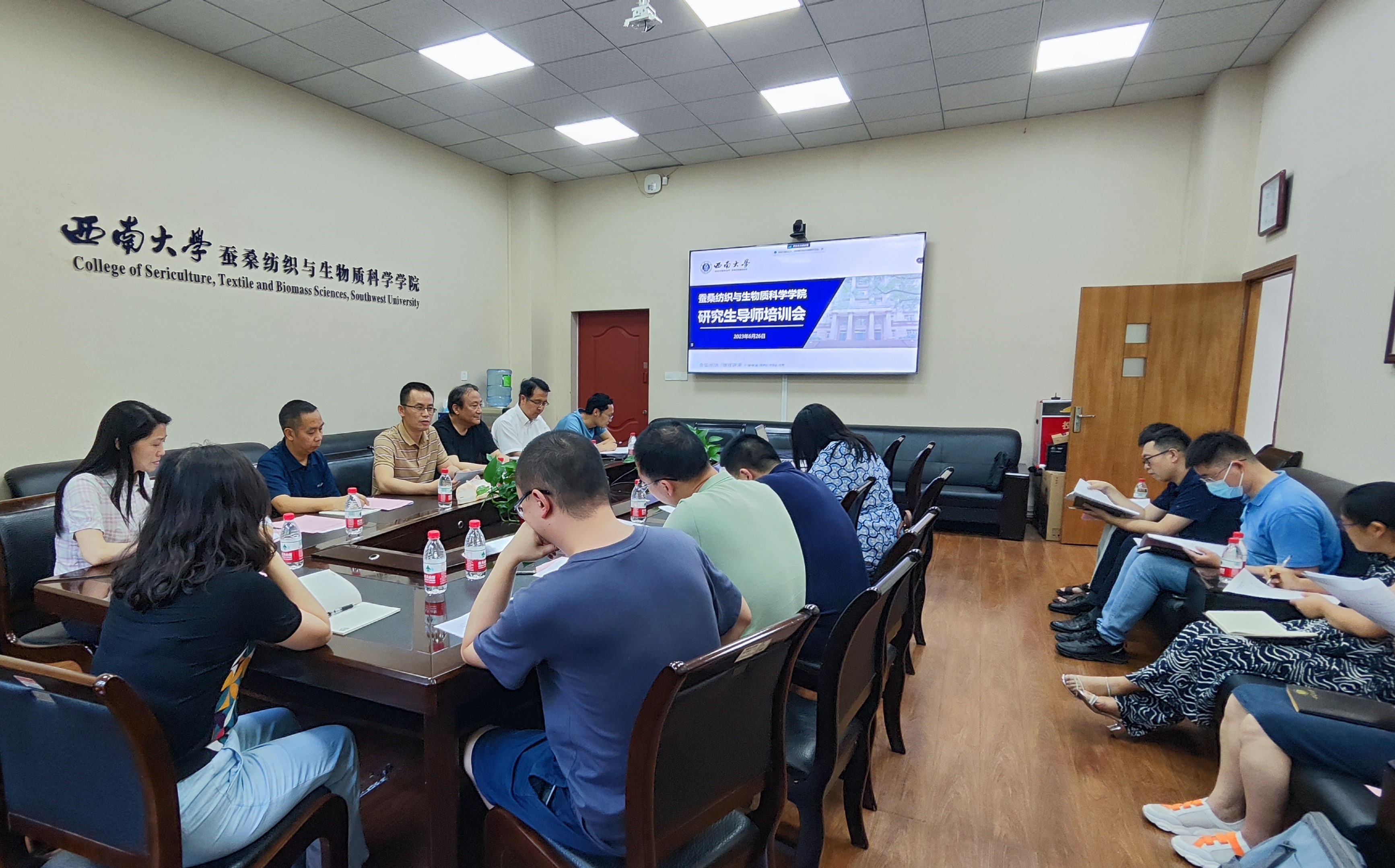 6月26日下午,色情小说 在33教106会议室召开2023年春季学期研究生导师培训会。色情小说党委书记张袁松、副院长赵天福、副院长蓝广芊、全体研究生导师、研究生教学秘书参加会议。会议由蓝广芊副院长主持。