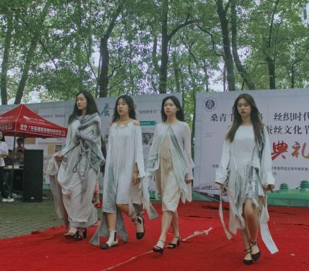 典礼仪式上,诵读《延伸的路,流淌的河》,展现出老一辈“蚕桑人”焚膏继晷、孜孜不倦的精神;走秀“服韵”,带我们置身盛唐,梦回宋元,穿越古今,探见长盛不衰的服装魅力与神秘。