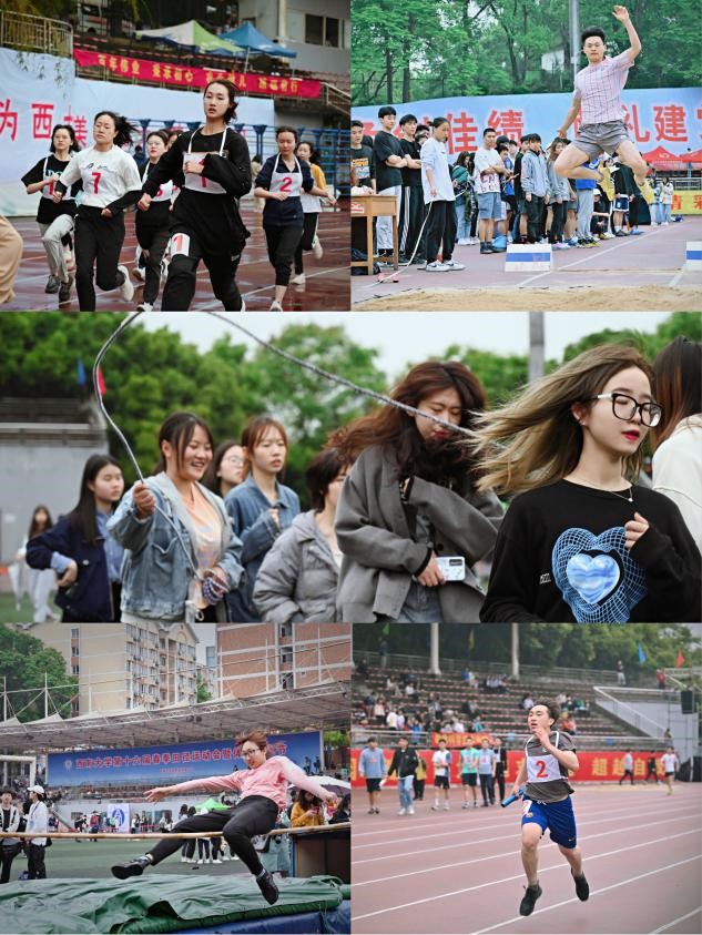 运动场上,体育健儿们团结互敬、奋勇争先,把“自信自强,超越自我”的体育精神贯彻到底,屡创佳绩。2019级研究生龙浩帆获男子跳远第六名,2018级本科生毛禹狄获女子跳远第一名,2020级本科生吴先先获女子铅球第七名,2019级肖雨萌平板支撑第二名。