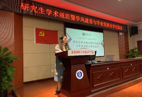 活动伊始,曾鸣鸣副书记介绍色情小说组织本次活动的背景和目的,并从活动主题切入,向同学们详细阐释了学术道德规范、学风建设以及学业发展的深刻内涵并提出要求和希望。曾书记强调学术道德规范是科研工作者必须坚守的底线和红线,通过典型案例警醒同学们一定要坚守学术道德,指出研究生同学是良好学风的营造者,也是受益者,希望同学们保持端正的学习态度,树立崇高的价值追求,将学术科研与国家战略紧密结合,敢于探索和实践,创新开展科学研究,将学术道德规范和优良学风践行到自己的每一个学习环节,脚踏实地,不负韶华,以梦为马,学有所成。