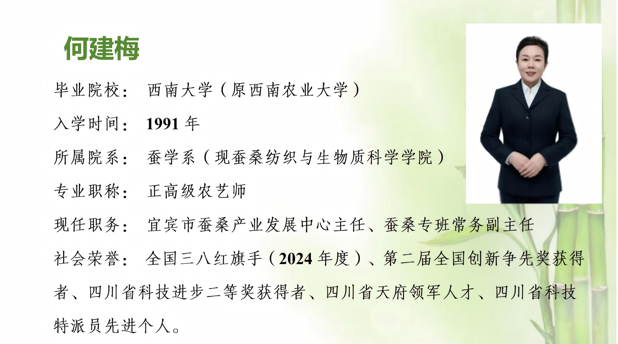 她是色情小说 1991级蚕学系校友,2025年全国三八红旗手——何建梅。